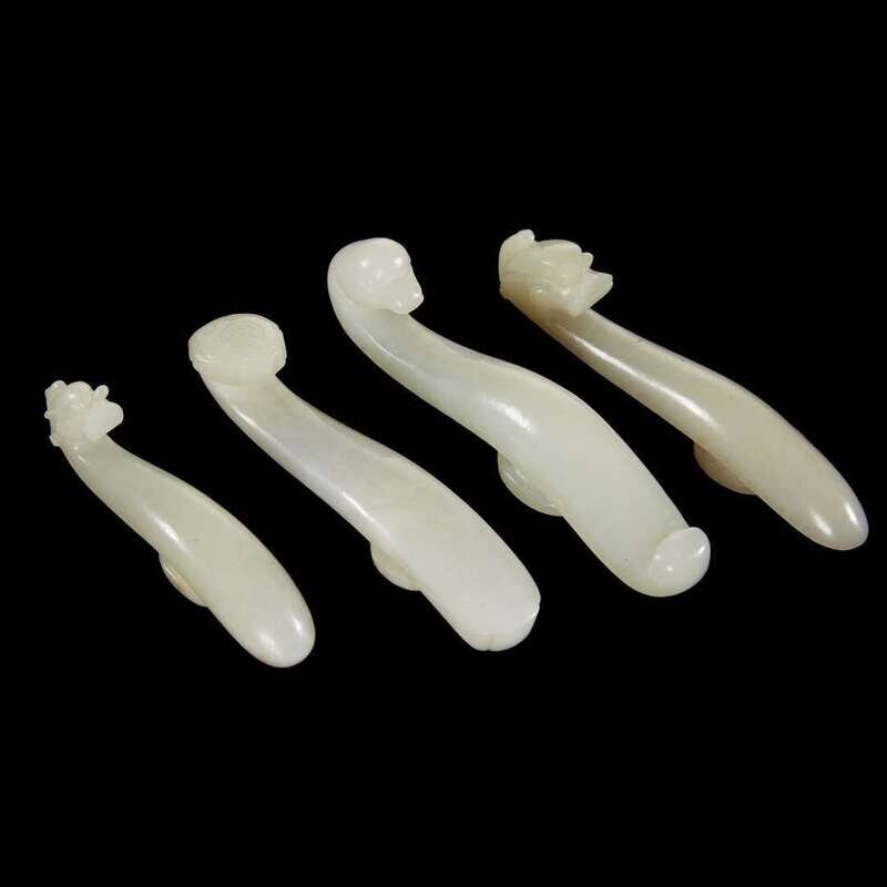 Four Chinese white and pale celadon jade belthooks qing dynasty