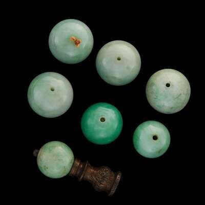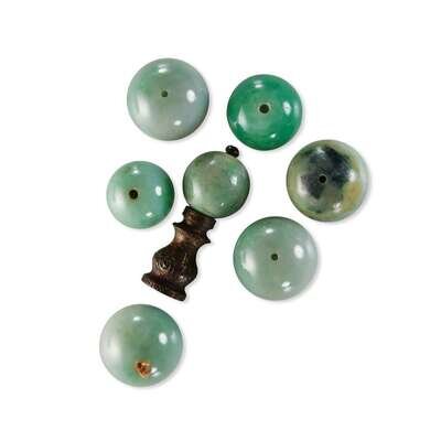 of varying quality and color intensity, ranging from greyish white-tinged with pale apple green to a pale greyish green, one mounted as a lamp finial.