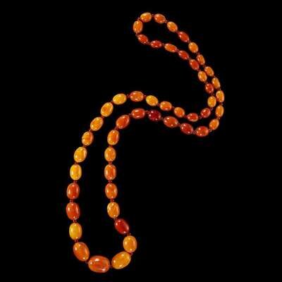consisting of fifty-one graduated oval beads, the amber of a opaque honey color.