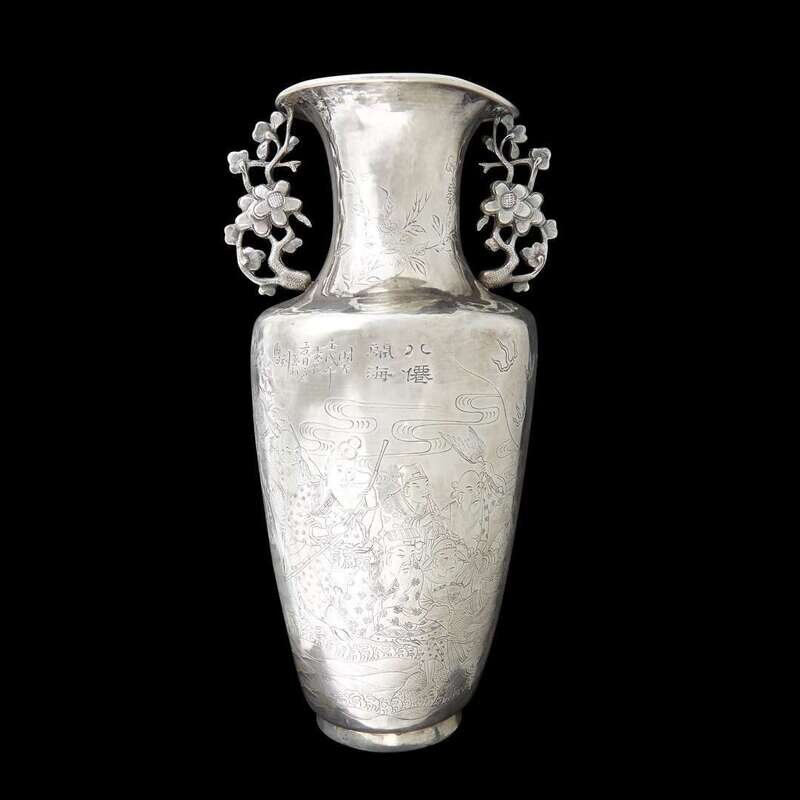 A Chinese engraved silver 'Eight Immortals' vase hengli, tian jin mark; dated renwu year