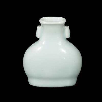 A small Chinese celadon-glazed flask-form vase qianlong six character seal mark