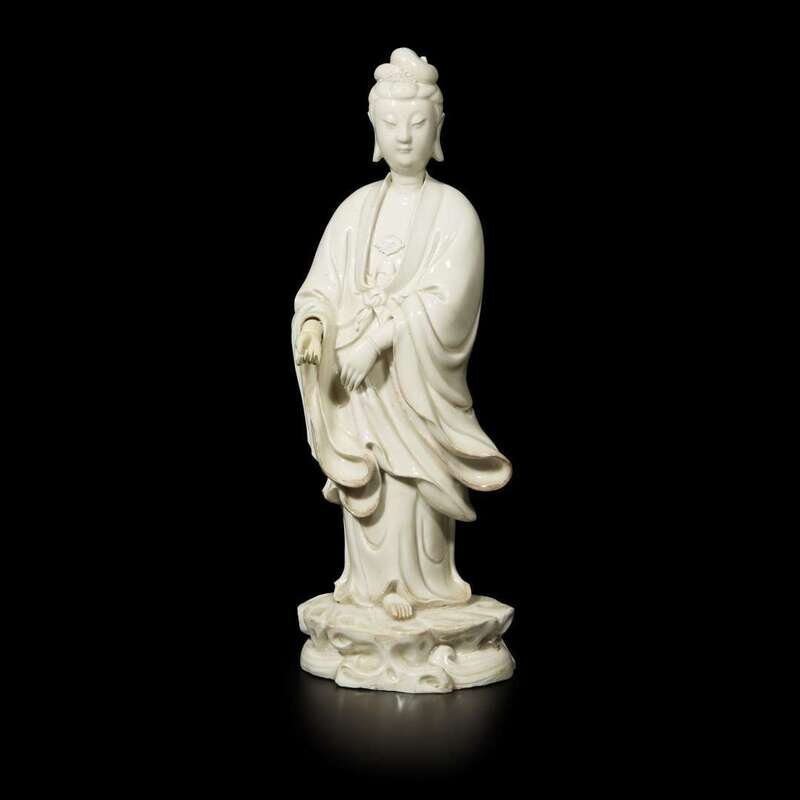 A Chinese Blanc de chine standing figure of Guanyin