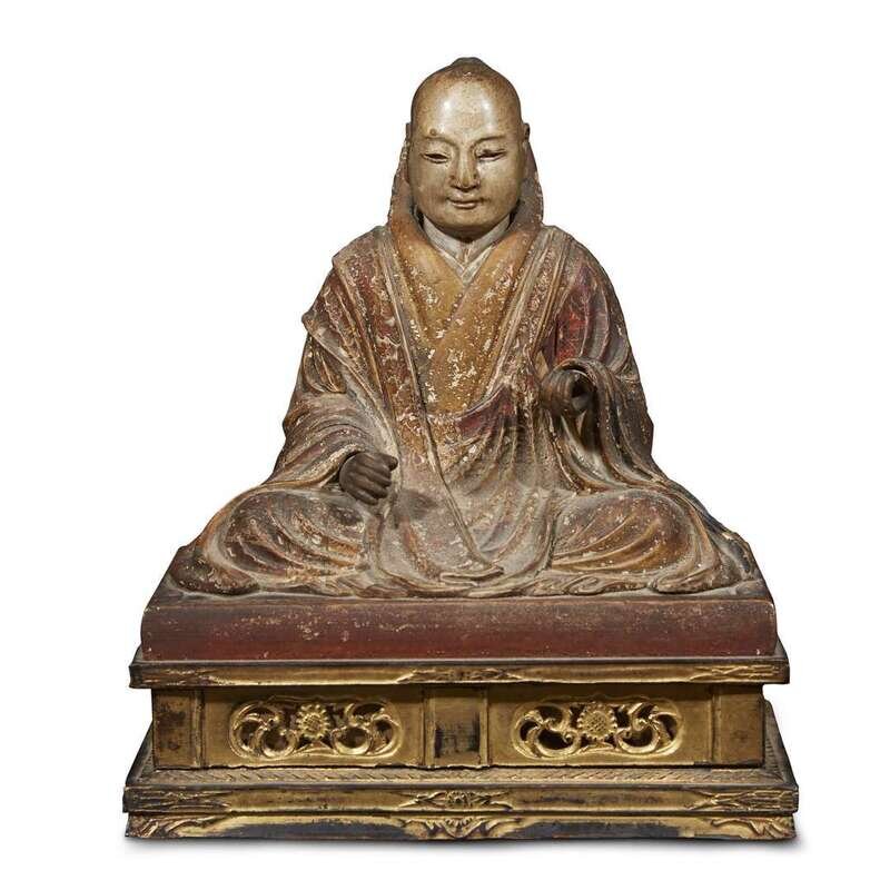 A Japanese painted and lacquered wood seated figure of a monk