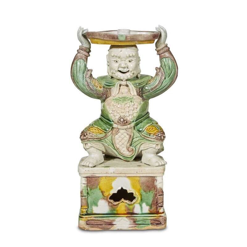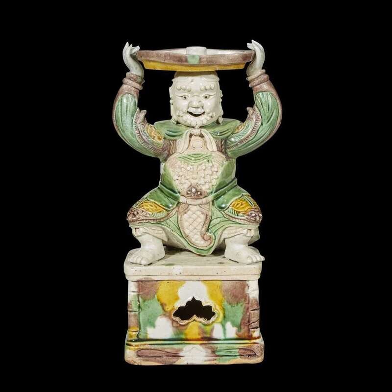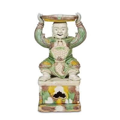A Chineses sancai glazed 'figural' candle holder kangxi period, qing dynasty