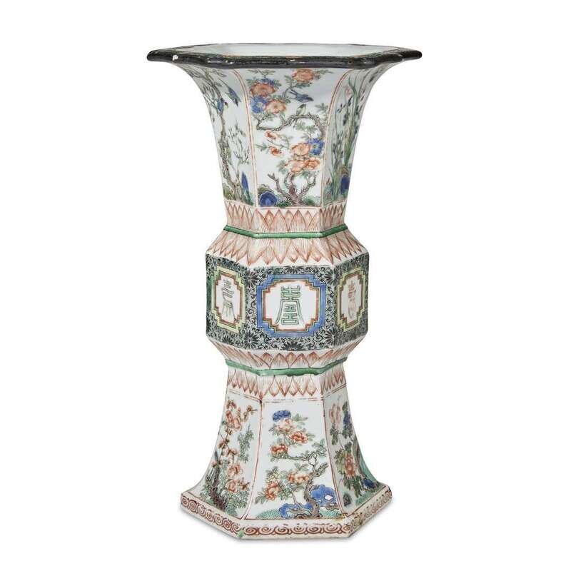 A Chinese famille verte hexagonal vase, Gu 18th/19th century