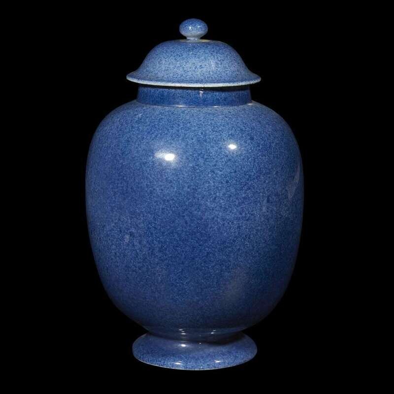 A Chinese powder-blue glazed jar and cover artemisia leaf mark