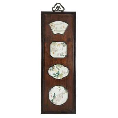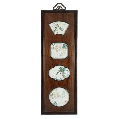 A pair of Chinese famille rose porcelain-inset hardwood plaques late qing dynasty