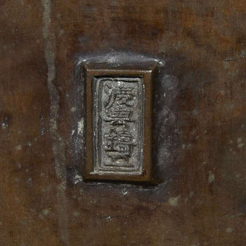 each of waisted square section, modeled with writhing dragons among clouds and waves, stylized scroll feet, underside with signature cartouche 'Toun chu'.