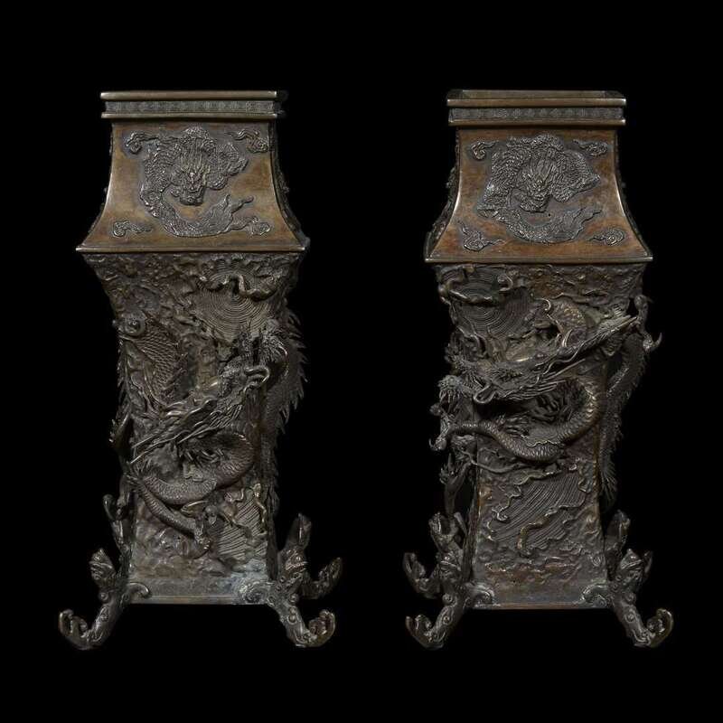 A pair of Japanese bronze 'dragon' vases meiji period, late 19th century
