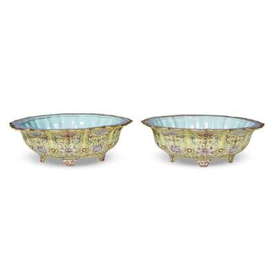 A pair of Chinese famille rose shallow planters