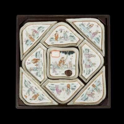 A Chinese famille rose porcelain 'figural' condiment set second half 19th century