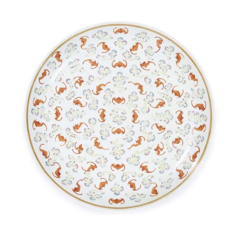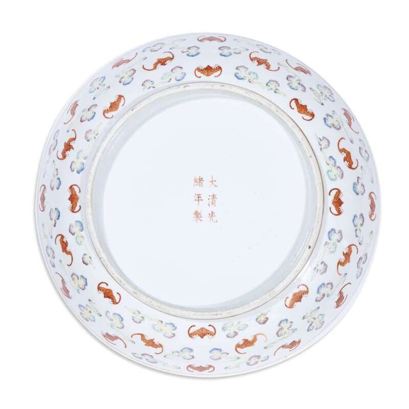 A Chinese large famille rose 'hundred bats' dish guangxu six-character mark and probably of the period