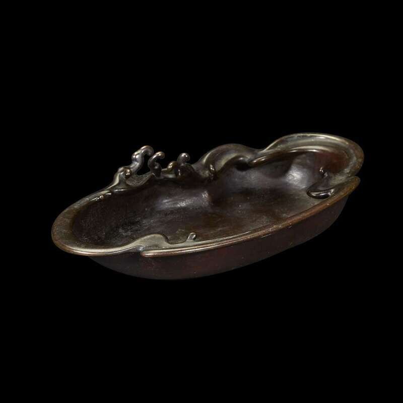 A Japanese patinated bronze 'wave' ikebana bowl late 19th/early 20th century