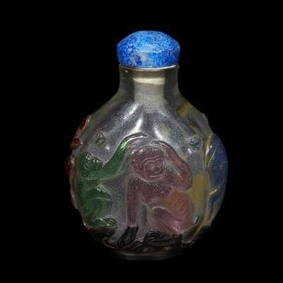 A Chinese six-color overlay glass 'monkeys' snuff bottle