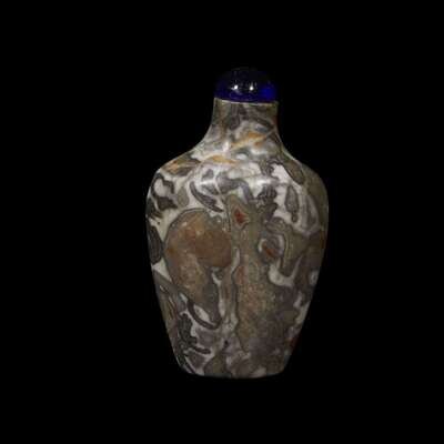 A Chinese spade-shaped puddingstone snuff bottle