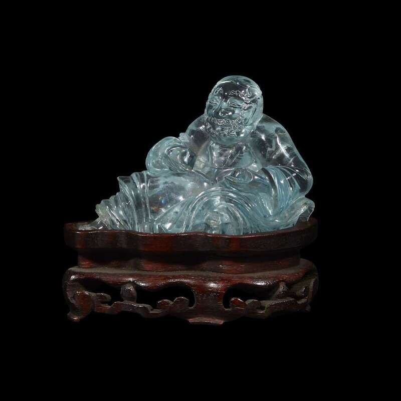 A Chinese carved blue rock crystal figure of a seated Luohan qing dynasty, 18th/19th century