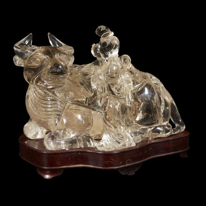 A Chinese rock crystal 'meiren, boy and buffalo' carving qing dynasty