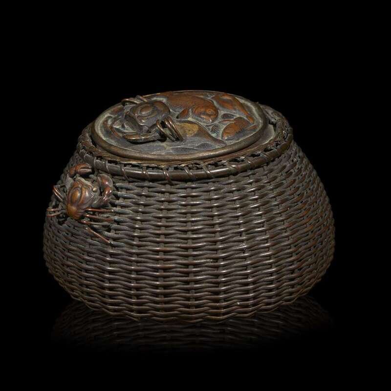 A Japanese mixed-metal 'fishing basket' ink well