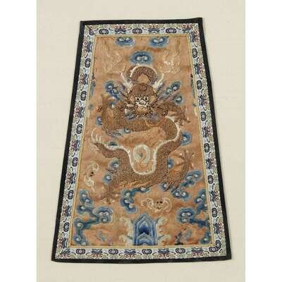 A Chinese silk embroidered 'dragon' robe fragment 19th century