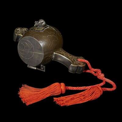 in the form of Daikoku's mallet, a mouse on top, decorated with flowers, scroll work and phoenix, red silk tassel.