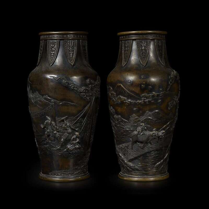 A pair of Japanese patinated bronze vases meiji period, 19th century