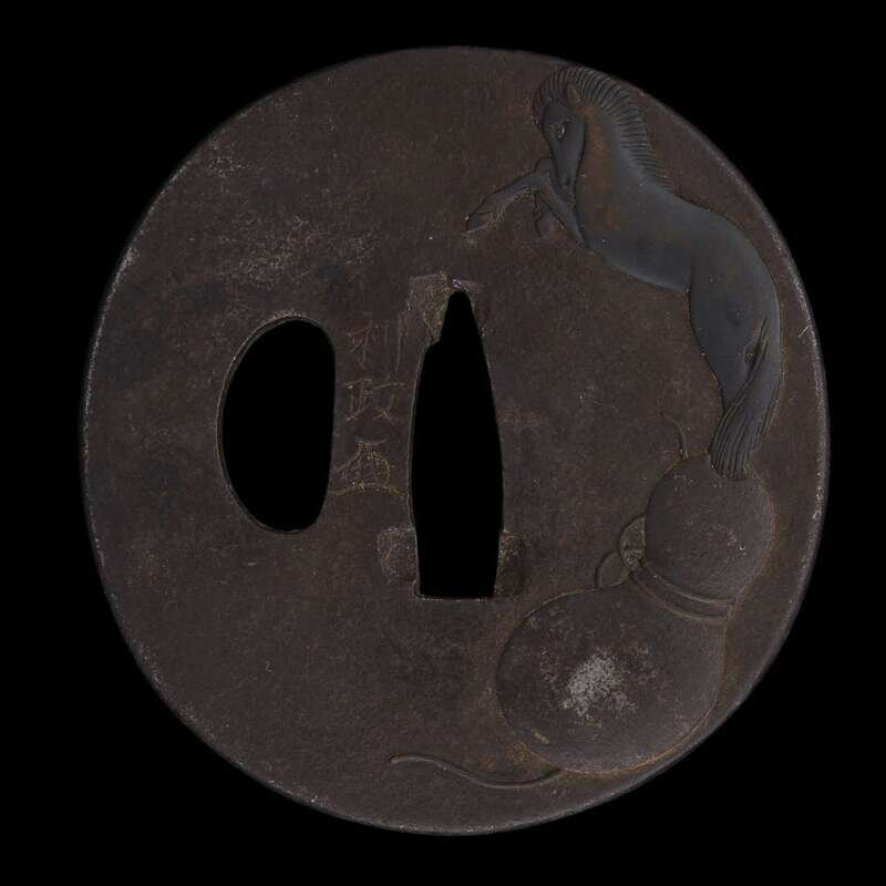 A Japanese iron 'double gourd and horse' tsuba