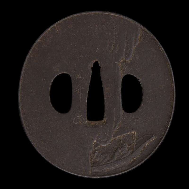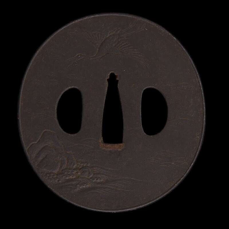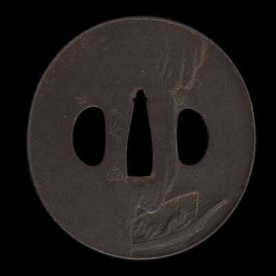 A japanese iron 'crane and boat' tsuba