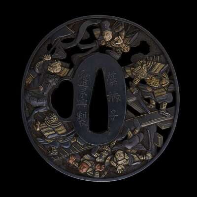A Japanese mixed metal 'samurais' tsuba