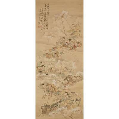 ink and color on silk, hanging scroll; signed Sekitei and with one seal, with associated wood box sight H: 45 3/4 in., 116.2 cm; W: 14 3/4 in., 37.5 cm