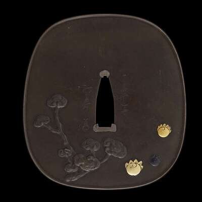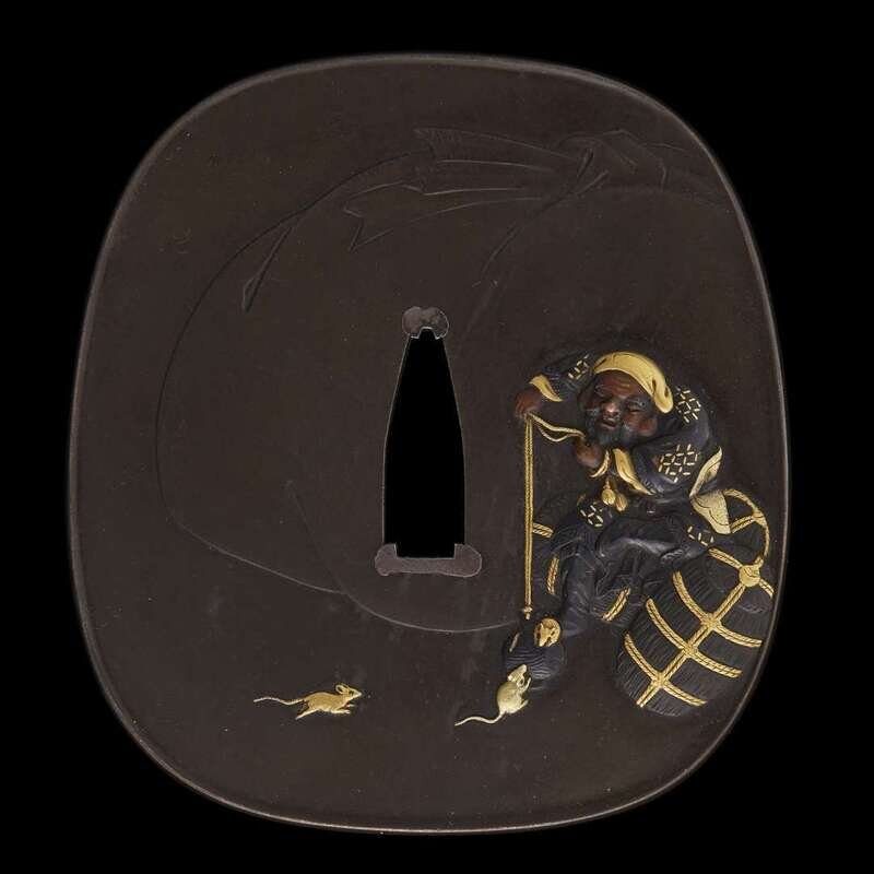 A Japanese mixed metal 'Daikoku, mice, and lingzhi' tsuba