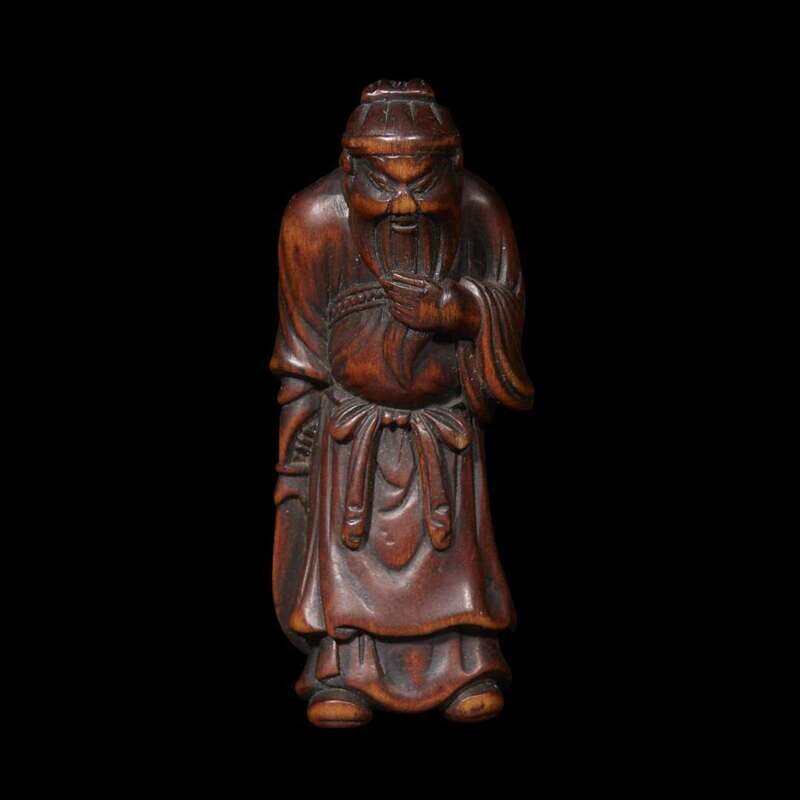A Japanese carved wood netsuke, Kan'u Uncho late 18th century