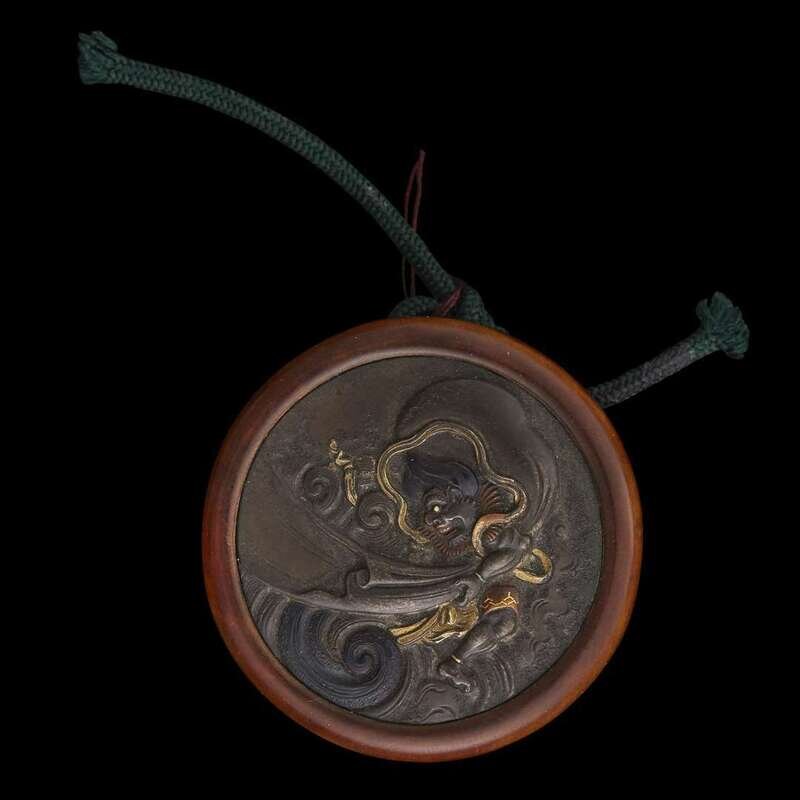 A Japanese circular metal and wood kagamibuta-netsuke 19th century