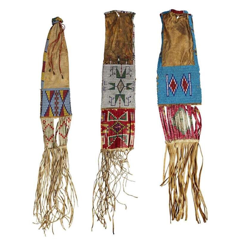 Three Sioux beaded hide and quilled pipebags Early 20th century