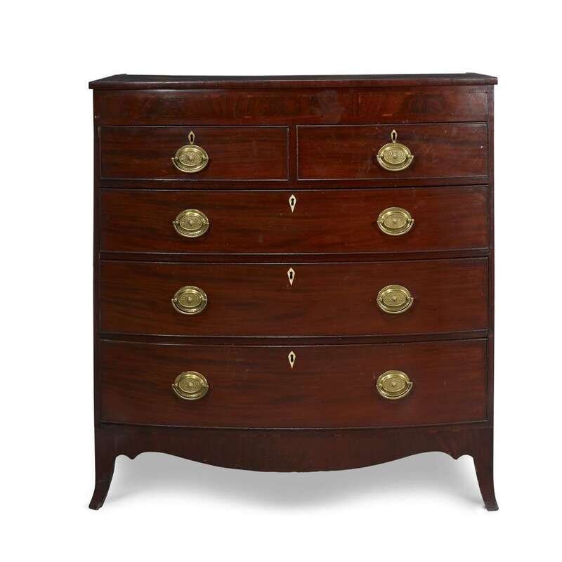 Federal mahogany and mahogany veneer chest of drawers New York , Norfolk, VA or England circa 1800