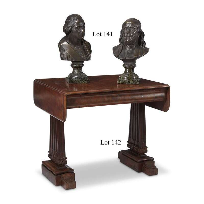 (1706-1790) Each raised on green marble socle, the bust of Washington inscribed, "Houdon."