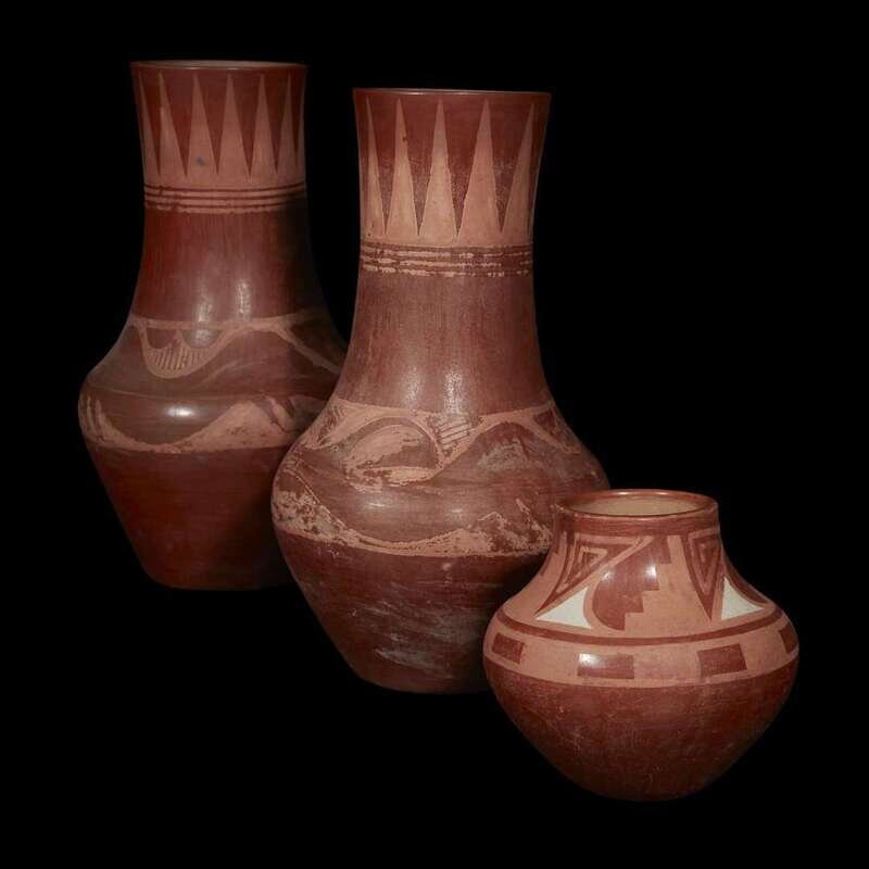 Pair of San Ildefonso redware pottery vases Tonita Martinez Roybal (1892-1945) and Juan Cruz Roybal (1896-1990)