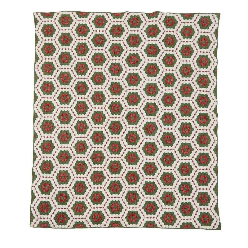 TN, circa 1865 Worked with printed green and red patches on a muslin ground, heightened with conforming quilting.
