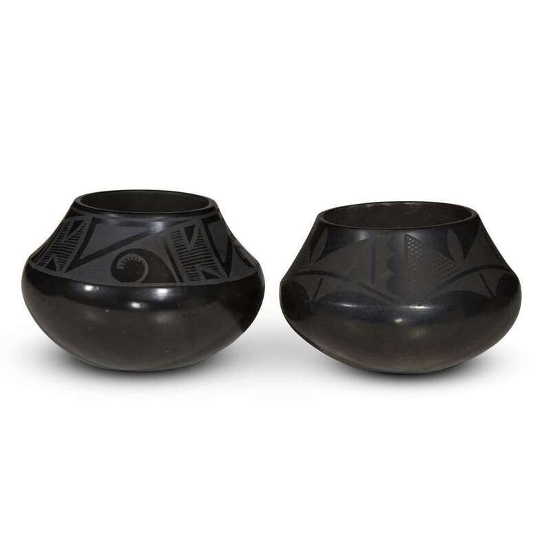 Two San Ildefonso blackware pottery storage jars Tonita Martinez Roybal (1892-1945) and Juan Cruz Roybal (1896-1990)