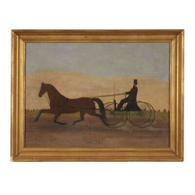 American School 19th century Horse and sulky rider