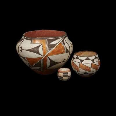 Three Acoma polychrome pottery jars First half 20th century