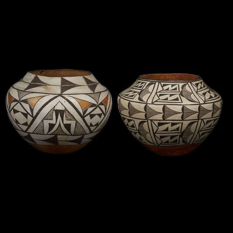 Two Acoma polychrome pottery storage jars Early 20th century