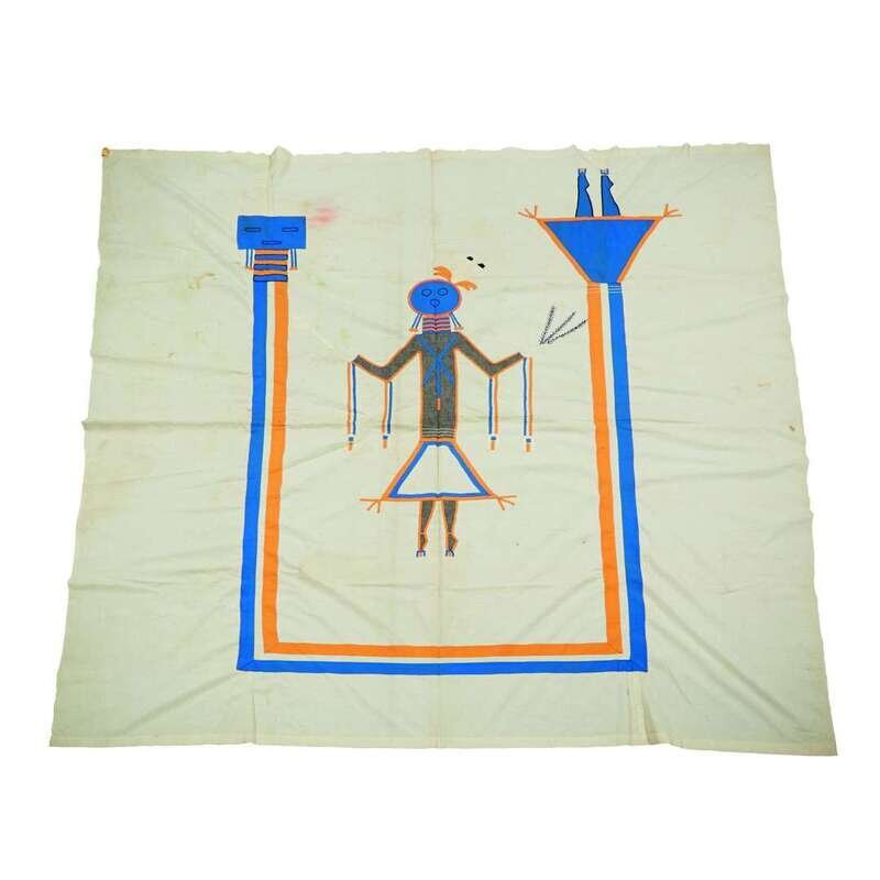 Appliquéd and embroidered Navajo figural Yei textile Circa 1940