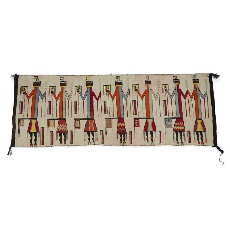 Consisting of seven figures against a white ground, affixed to a hanging dowel.