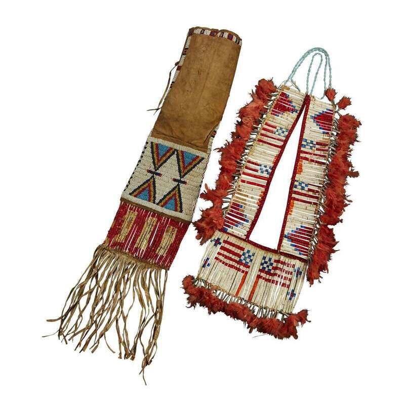 Sioux beaded hide pipe bag and a quilled breastplate Late 19th/early 20th century
