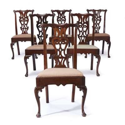 Set of six Chippendale carved mahogany side chairs Circa 1760
