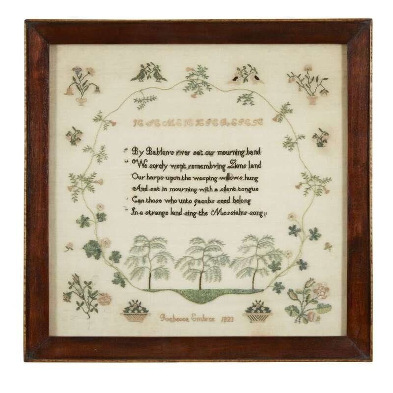 Needlework mourning sampler "Rebecca Embree 1823," Chester County, PA