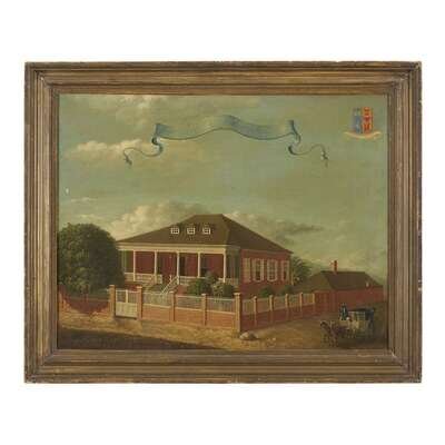 ca," 1778 Signed and dated, lower left, “S. Felsted Pinxit. 1778, Count(r)y House, Kingston, Jamaica,” oil on canvas, framed.