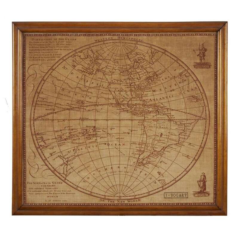 Printed linen handkerchief "Western Hemisphere or the New World," early 19th century