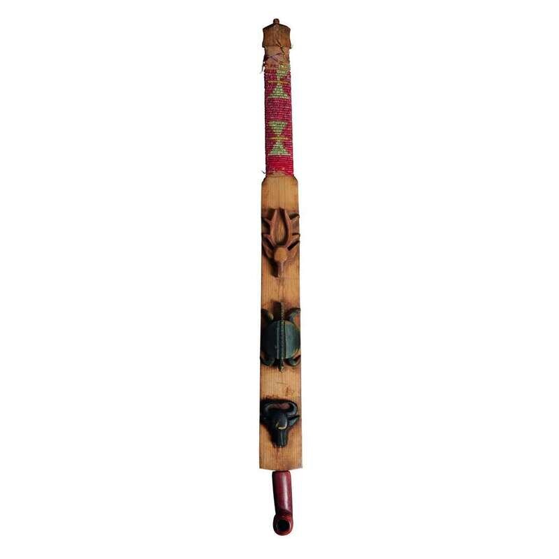 Sioux catlinite pipe with figural and quillwork wood stem First half 20th century