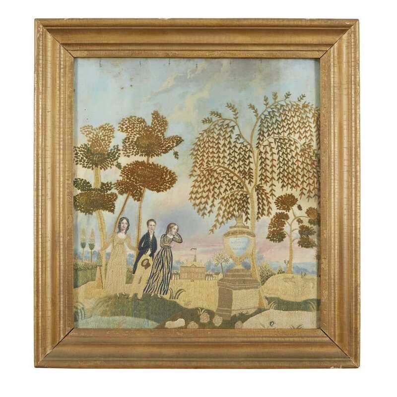 Silk embroidered picture to the Memory of Washington Possibly by Mary Jackson (1789-1851), New Castle, DE, circa 1815
